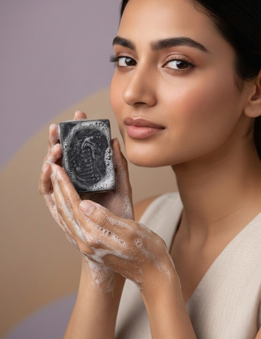Our Charcoal Tea Tree Detox Bar is a deep-cleansing, plant-based soap crafted to purify and rebalance the skin without stripping its natural moisture. Made with nourishing oils, rich butters, traditional ghee, and mineral clays, this bar gently draws out impurities while tea tree essential oil helps keep skin feeling fresh, clean, and calm. Ideal for everyday detox care for face and body.
